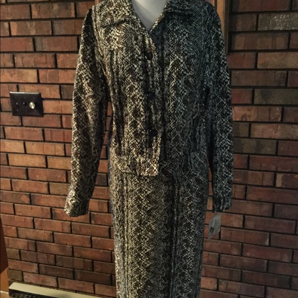 Snake pattern. Short skirt button front jacket waist bank on jacket. 100% cotton. Size 6
