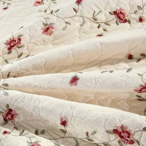 2-pc Floral Embroidered Pillow Shams Queen 100% Cotton Quilted (Cream,20"X28")
