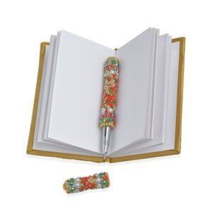 Enrich your collection of handcrafted pieces with this fabulous pocket diary journal notebook and ball point pen set. The vibrant pieces add a pop of color and sparkles to your work desk or office stationary.