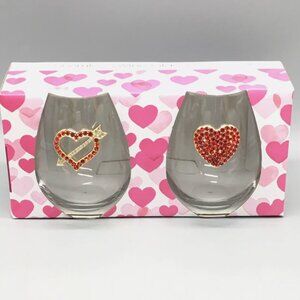 Brand New Rhinestone Hearts Stemless Wine Glasses