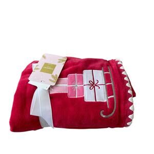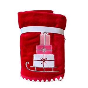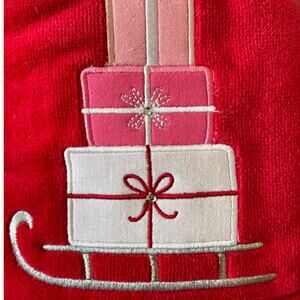 2pc Kassatex Christmas Hand Towels Embroidered Presents on Sled Red Pink NEW
