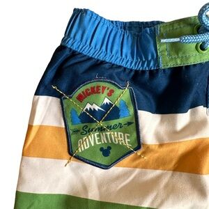 A 2pc set including a long sleeve rash guard by Cat & Jack in white, light blue & navy blue. The trunks feature Disney’s Mickey Mouse in a summer adventure. Attached mesh underwear. The trunks are NWOT.