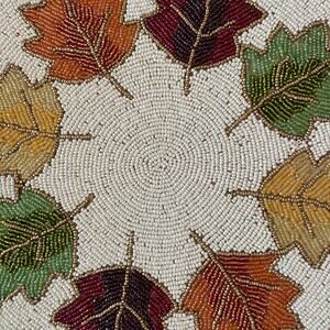 NICOLE MILLER Beaded Fall Leaves 15in Round Placemat Charger Multicolor