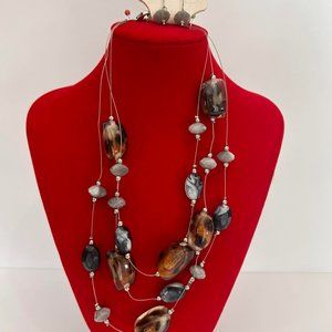 2pc. NWT Silver tone Beaded Necklace with Hook Earring set