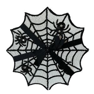 2pc Rachel Zoe Halloween Spider Web Beaded Placemat Charger 15in Black White