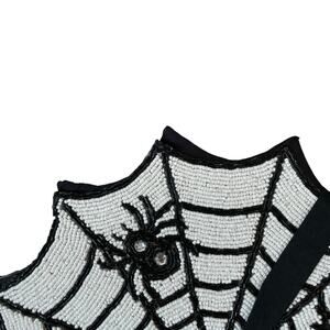 2pc Rachel Zoe Halloween Spider Web Beaded Placemat Charger 15in Black & White