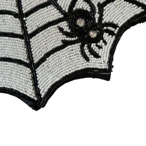 Add spooky elegance to your Halloween table with this Rachel Zoe Beaded Spider Web Placemat Set! This set of 2 brand new placemats features intricate beading, spider accents, and a chic scalloped border—perfect as chargers or decorative accents. Made from durable polyester, these stylish placemats bring a spookalicious touch to any festive setting. A must-have for Halloween entertaining or gothic glam décor!