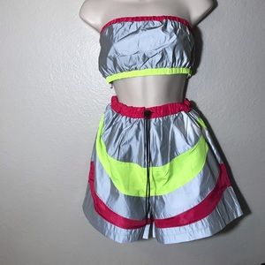 2pc Reflective high waisted short and tube top set