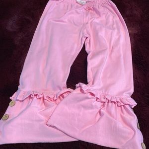 Pants are labeled as a XL. I measured them as 24 inches long. 18 in width around the waist. The jacket is labeled as a Small. I measured the sleeve as 17 inches from shoulder to end of sleeve. This was purchased at a Boutique.