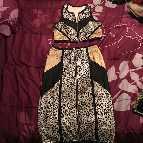 Black and white cheetah print 2pc set w/gold patches. I wore 1 time