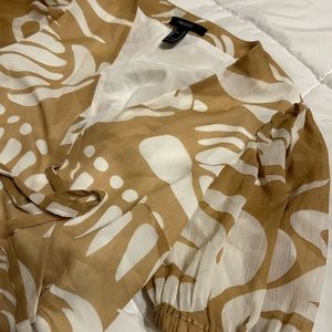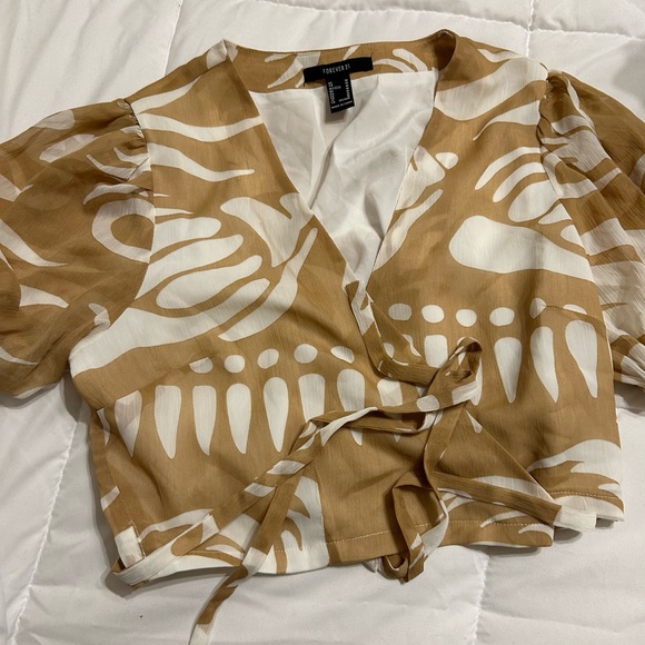Sheet print 2pc set shorts are lined, high waisted and top is a short sleeve wrap top cropped