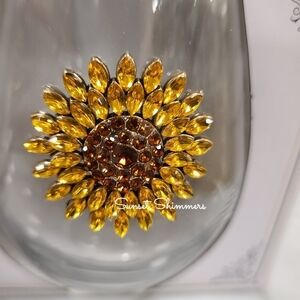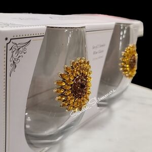2pc Set Summer Fall Jeweled Rhinestone SUNFLOWER Stemless Wine Glasses NEW