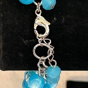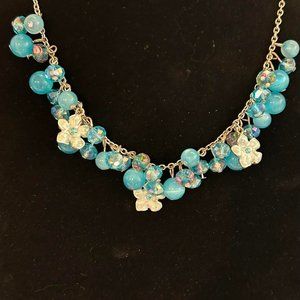 2pc. Silver tone Blue Beaded/Flower adjustable Necklace & Bracelet set