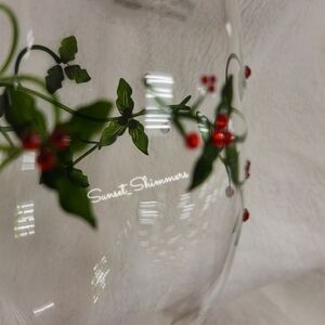 Add some sparkle to your holiday table with these beautiful wine glasses. Each clear glass is hand painted with holly Berries and embelished with sparkly Red rhinestones. Sooooo Pretty 😍 Capacity: 20 oz Gentle Hand Wash Only. Brand New!
