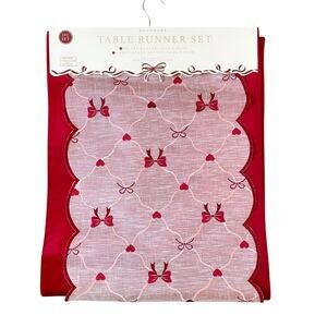 2pc Velvet Valentines Day Table Runner Bows Hearts Red & White by Envogue New