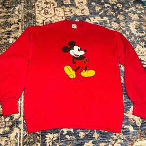 Vintage Jerzees Walt Disney Productions Red Color Mickey Mouse Jogging Suit Sweater Long Sleeve Sweatshirt Jogging Drawstring Pant 2 Piece Set Size Adult Large MADE IN USA 1990’s