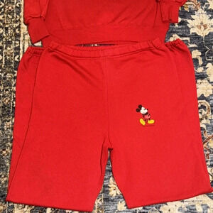 2pc Vintage Jerzees Walt Disney Red Mickey Mouse Jogging Sweater Pant Set LG