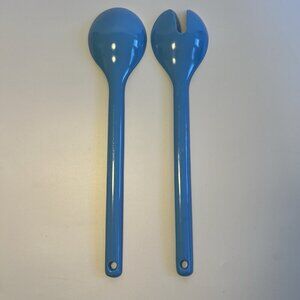 2pc Vintage Melamine Utensils Aqua Blue Salad Servers Serving Slotted Spoon Set