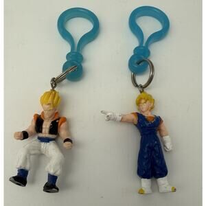 Used in good condition with signs of use, but the keychain part still functions as intended. See photos for full detail. The 2pc Vintage Super Saiyan Vegito & Gogeta Dragon Ball Z Mini Figure Keychain 2.5" is a collectible item featuring characters from the popular anime and manga series Dragon Ball Z. This keychain includes mini figures of Super Saiyan Vegito and Gogeta, adding a unique touch to any collection or as a fun accessory to carry on a keychain. The vintage design adds a nostalgic element to the piece, making it a must-have for fans of the Dragon Ball Z franchise.