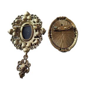 2pc Vintage Victorian Court Style Beauty Head Cameo Brooch Pins Elegant Clothing