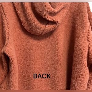 2pc set Top and Bottom. Elastic in legs and arms. Top is hooded with drawstring.Such a cozy little outfit going into fall for those cool mornings and evenings. 100% Recycled polyester. Worn once. Size 2X. Top is 19 1/2โ long. Pants have a 28โ inseam. Smoke free home! Color is a very pale orange. Thanks for stopping by!๐ซถ๐ผ๐๐
