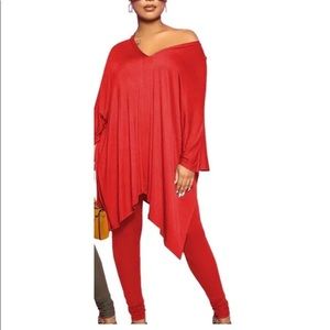 Oversized V front& back top with legging fit pant elastic waist 95% polyester 5% spandex