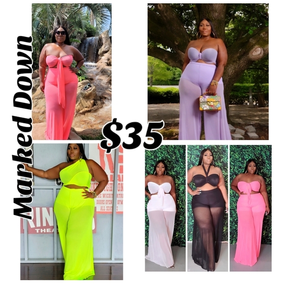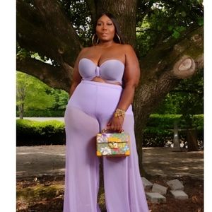 2pc wrap and sheer palazzo pants with built in short great for vacation or a night on the town.