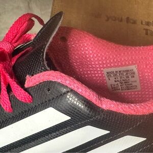 1 pair ADIDAS ⚽️ SOCCER CLEATS BLACK & PINK SIZE 4youth GENTLY USED(review photos)