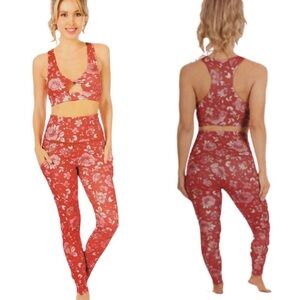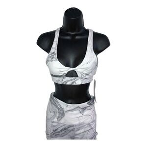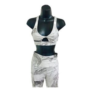 2pc white gray swirl peek-a-boo twist front racerback sports bra & leggings active performance set size large