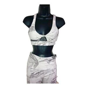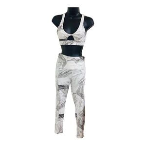 2piece white gray swirl peek-a-boo twist front racerback sports bra & leggings active performance set size large