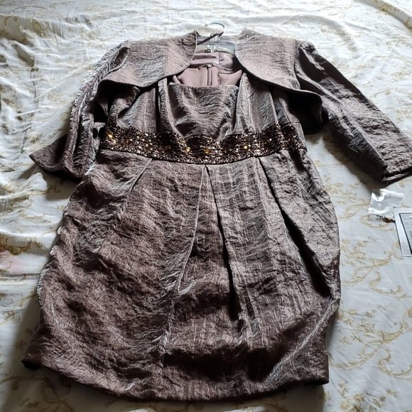 Brown mini dress set.The dress is pleated with some detailing on the waist, Zipper in the back