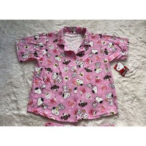 2pc Halloween Snoopy Pajama PJ Set Shorts Women’s Sz M Hot Cocoa Bats Pink NEW