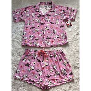 2pc Halloween Snoopy Pajama PJ Set Shorts Women’s Sz XL Hot Cocoa Bats Pink NEW