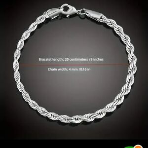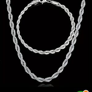 2pcs 925 SS Stamped 28" Necklace and Bracelet set - (rope braid chain)