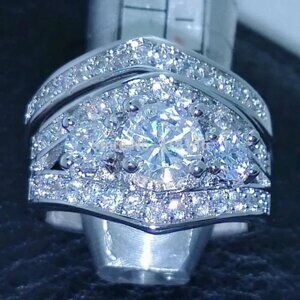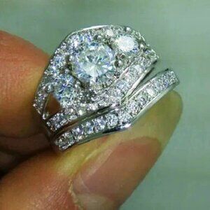 2 pcs 925 Sterling Silver Plated Retro Carved Luxury Fashion Ring Set, UNVN12133