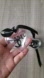 2pcs Stylish clear heart ornaments featuring the iconic logo. Decorated with sleek black ribbons.