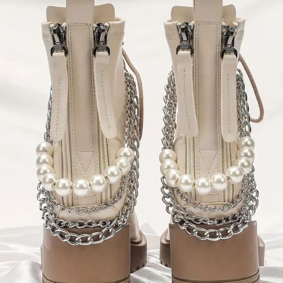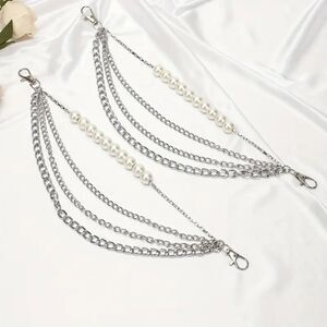 Elevate your footwear style with this pearl and chain boot jewelry set, the perfect blend of elegance and edge. Featuring layered silver chains and a row of pearls, these boot anklets add a unique touch to any outfit. Designed to clip securely onto boots, heels, or sneakers, they are perfect for gothic, punk, streetwear, or festival fashion.