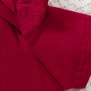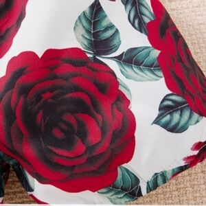 Adorable 2-piece infant short set with a soft cotton-feel t-shirt, silky shorts, and a cute tie belt that could be used for a cute headband. Well made, has double stitching, a nice wide elastic waistband, and is easy to care for. The measurements in inches are as follows: