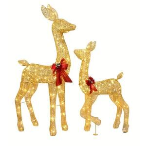 2pcs Large Golden Deer Set - Elegant /Indoor Christmas Decoration with Glowing Antlers & Twinkling Lights-like Effect, Sturdy Plastic Garden Deer Mother & Fawn (73”Tall x 27”Wide x 136”Spreading) - All-Weather Durable Winter Yard Decor for Holiday & Year-Round Use - Easy Assembly Required - Ideal Gift for Home or Garden - Festive Deer Pair with Warm Glow Lighting Design, Christmas Reindeer, Christmas Decorations for Yard