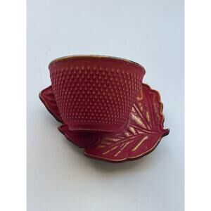 Luxury 2pcs Japanese Tea Cups Set. Red and Gold Cast Iron Tea Cup Set,