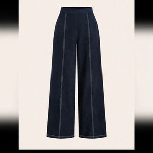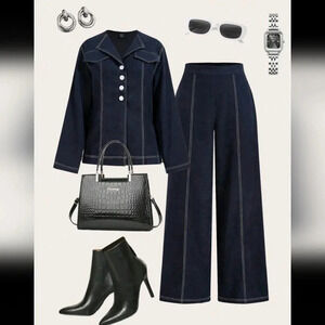 2pcs Women Casual Colorblock Outseam Blouse And Pants Suit, Autumn
