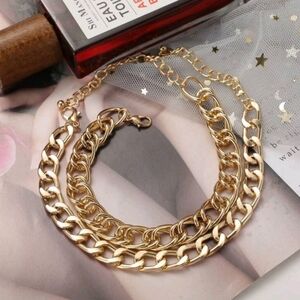 2pcs gold tone Unique Chunky Chain Alloy Anklet or bracelet Set for woman