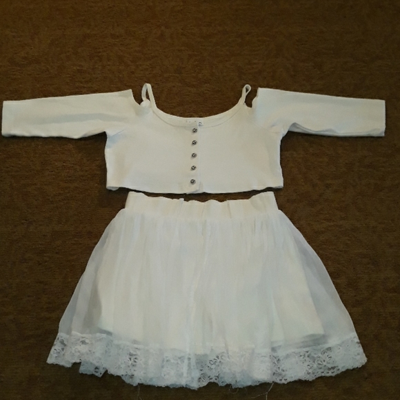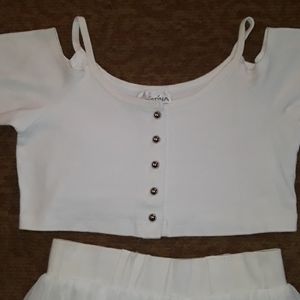 Adorable 5 button down top with cold shoulder's 3/4 length sleeves skirt has built in shorts with pleated ruffles all around the skirt belt loops for added Style NEW without tags never been worn but in excellent condition