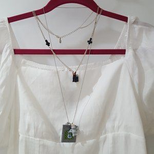 Handmade. Some fun kitschy 90s necklaces I put together the other day. Toy Onix, Machop, and Dragonair cartridge (the back has info scratched off) sweater necklace (28" ball chain). Houndour upside-down black howlite cross layer chain necklace (20.5" fully extended).