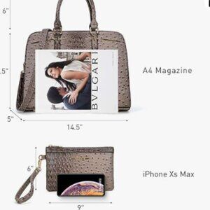 This satchel bag for women is made of high-quality Vegan leather. No animals were harmed. Highly anti-scratch and tear-resistant, not easy to be out of shape. Detailed with high quality gold tone hardware, zippers, bottom studs. Rolled leather top handles are very comfortable for carrying which are specially strengthened by durable metal decoration.