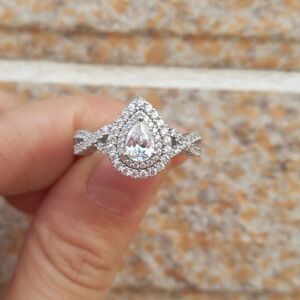 2pcs 925 silver Engagement Ring Wedding Band Set Pear Shaped Diamond Ring