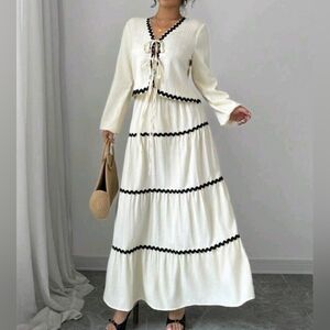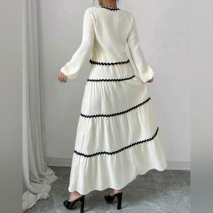 2pcs/Set Elegant French-Style Lantern Sleeve Ruffled Bowknot Dress & Skirt