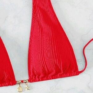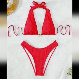 2pcs/Set Women 2025 Summer Beach Solid Color Halter Drawstring Sexy Bikini