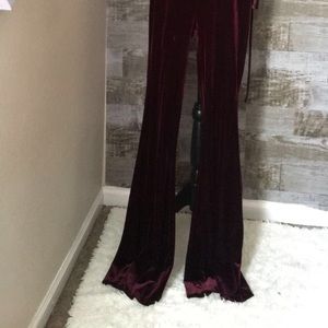 Velvet two piece pants suit in a maroon color