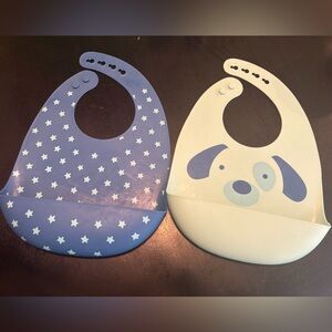 2-piece waffle weave burp cloth & Bib set. Great for baby shower gift! White with Blue/Orange logo.